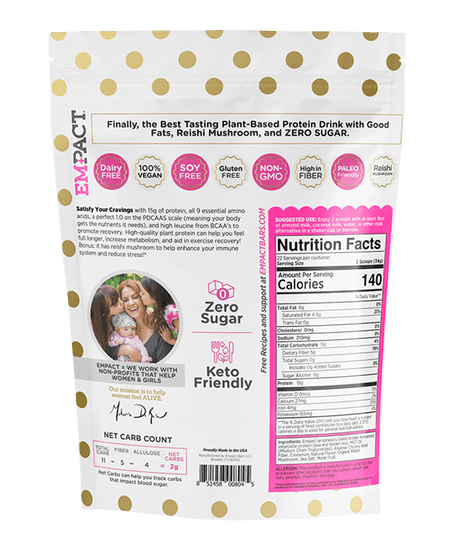 Hi! I’m Melonie DeRose, and I’m the Founder of Empact. I’m beyond words to introduce our new protein powder that you’re going to actually want to drink. I have been trying for the past few years to find the perfect plant-based protein drink--and we did it!